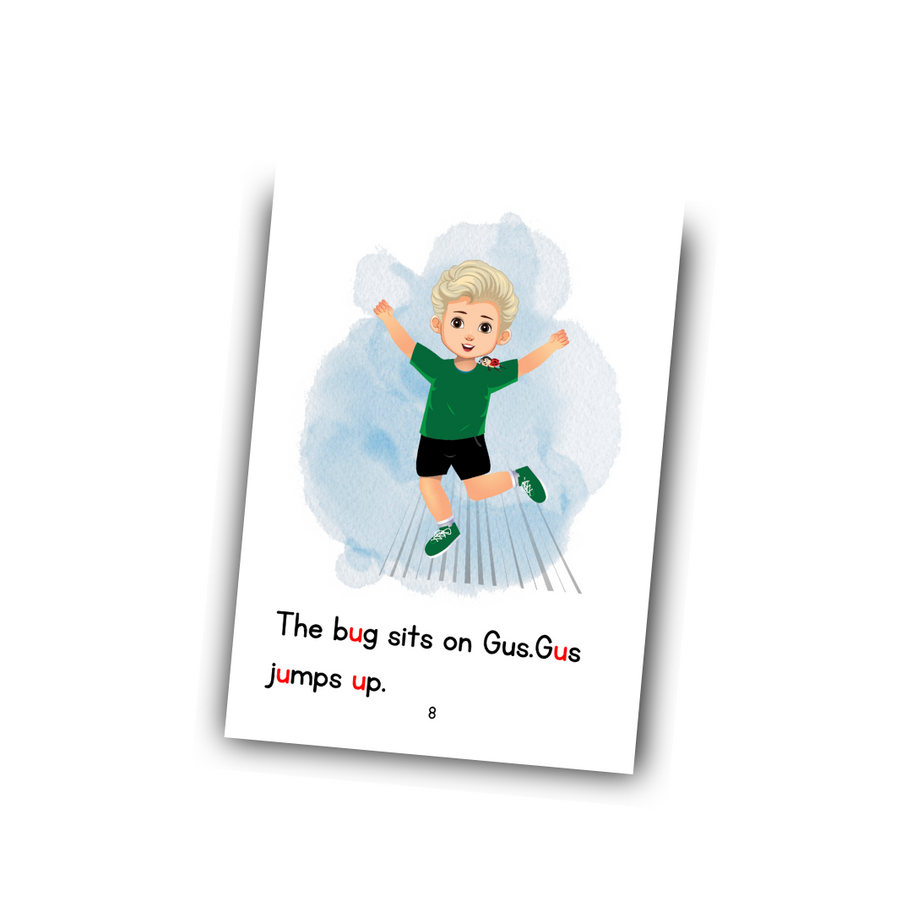 Gus and the Bug book focuses on short u sound. It has short sentences and short words, making it easier for an early reader. Most of the letter sounds used in this book are consistent.